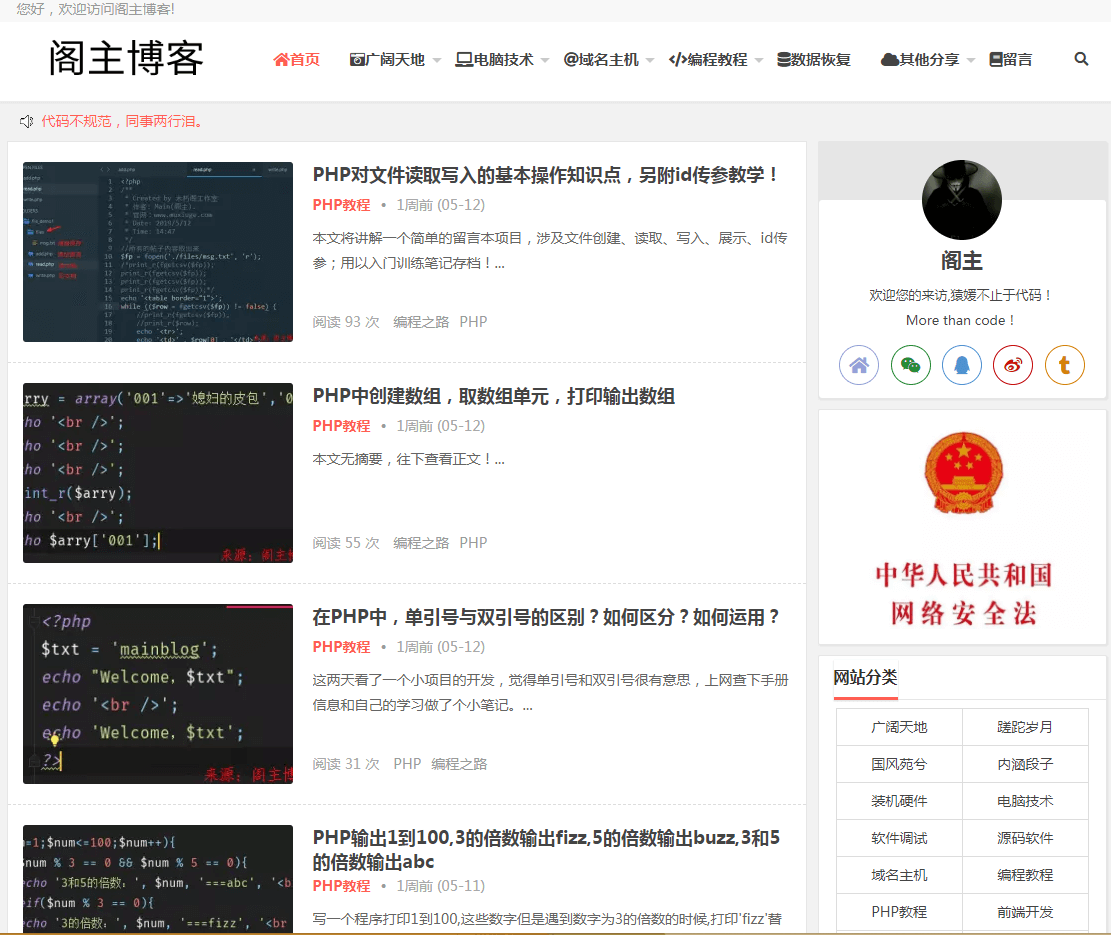 关键词:阁主, 阁主个人博客, 不止于代码, 技术博客, 阁主动态, 装机硬件, 源码软件, 域名主机, 编程教程, 影音观评, 游戏资讯, 大数据开发,PHP 开发教程, 数据恢复, 电商运营,Python 开发, 程序安装解决,Web 前端, 阁主博客