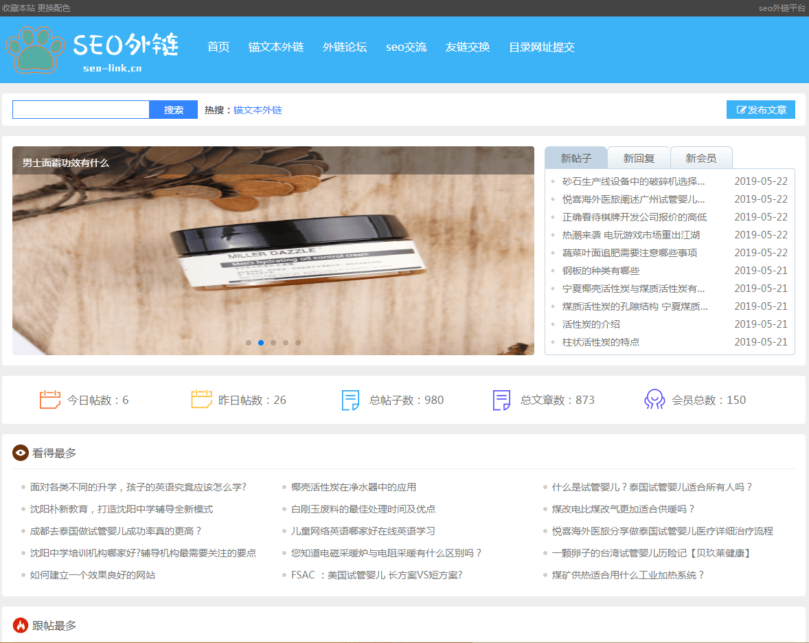 介绍:小熊掌 seo 外链网 Seo-link 是一个高质量软文外链论坛,可以免费发外链的网站,可带锚文本外链,适用人群:个人站长,推广人员,外链专员;作用:吸引蜘蛛、加速快照更新、做网站反链,提升网站排名速度