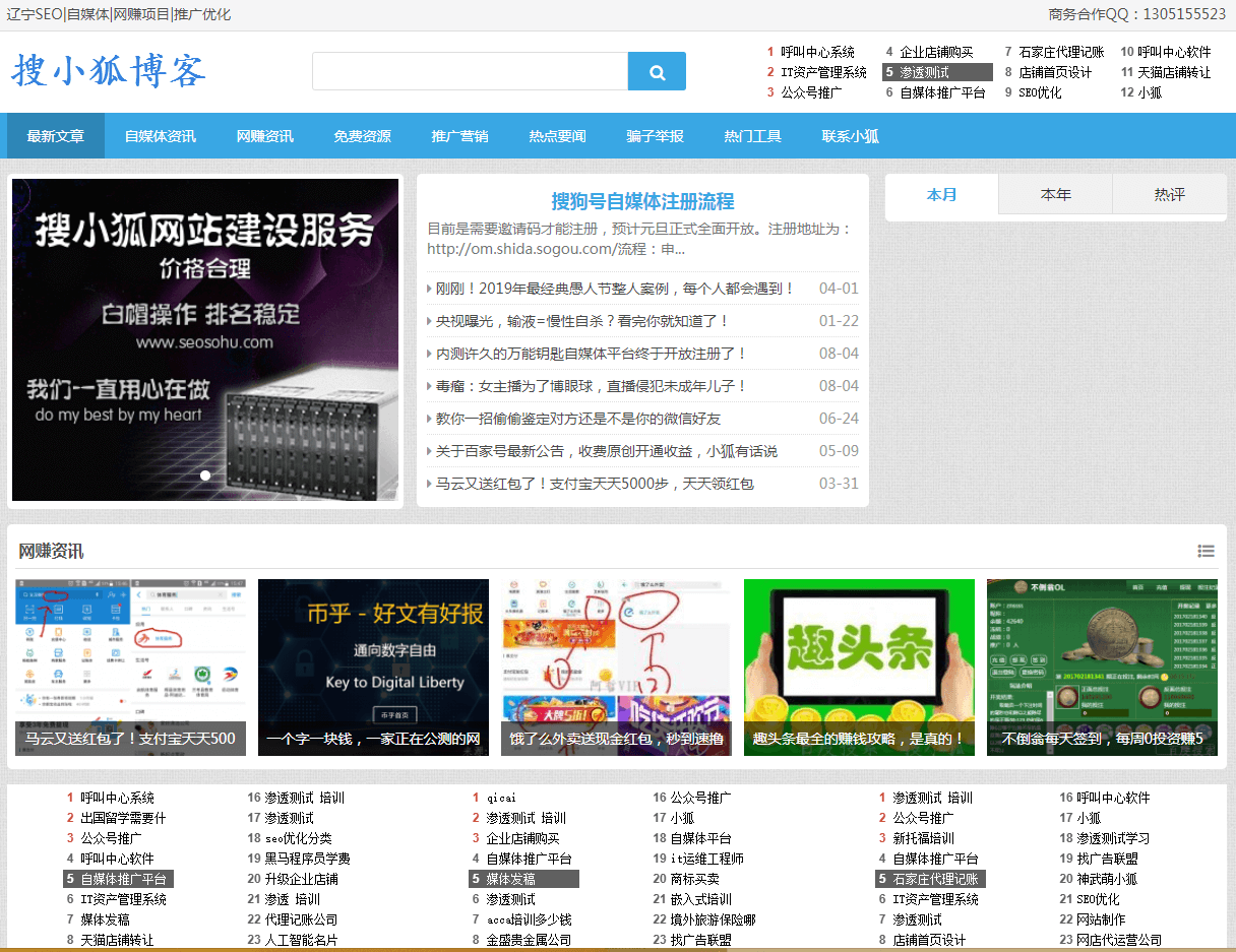 介绍:搜小狐自媒体博客关注社会互联网领域。搜集分享网络营销项目, 网赚项目, 自媒体, 搜索引擎优化 (SEO), 推广营销, 微商, 网站建设等方面的经验心得。微信 plutoice