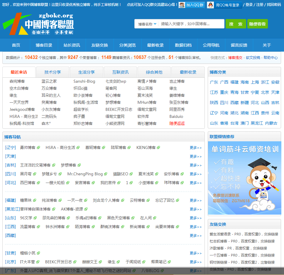 关键词:中国博客联盟, 互推联盟, 博客收录, 博客导航, 博客目录, 博客推广, 博客交流, 博客展示, 个人博客