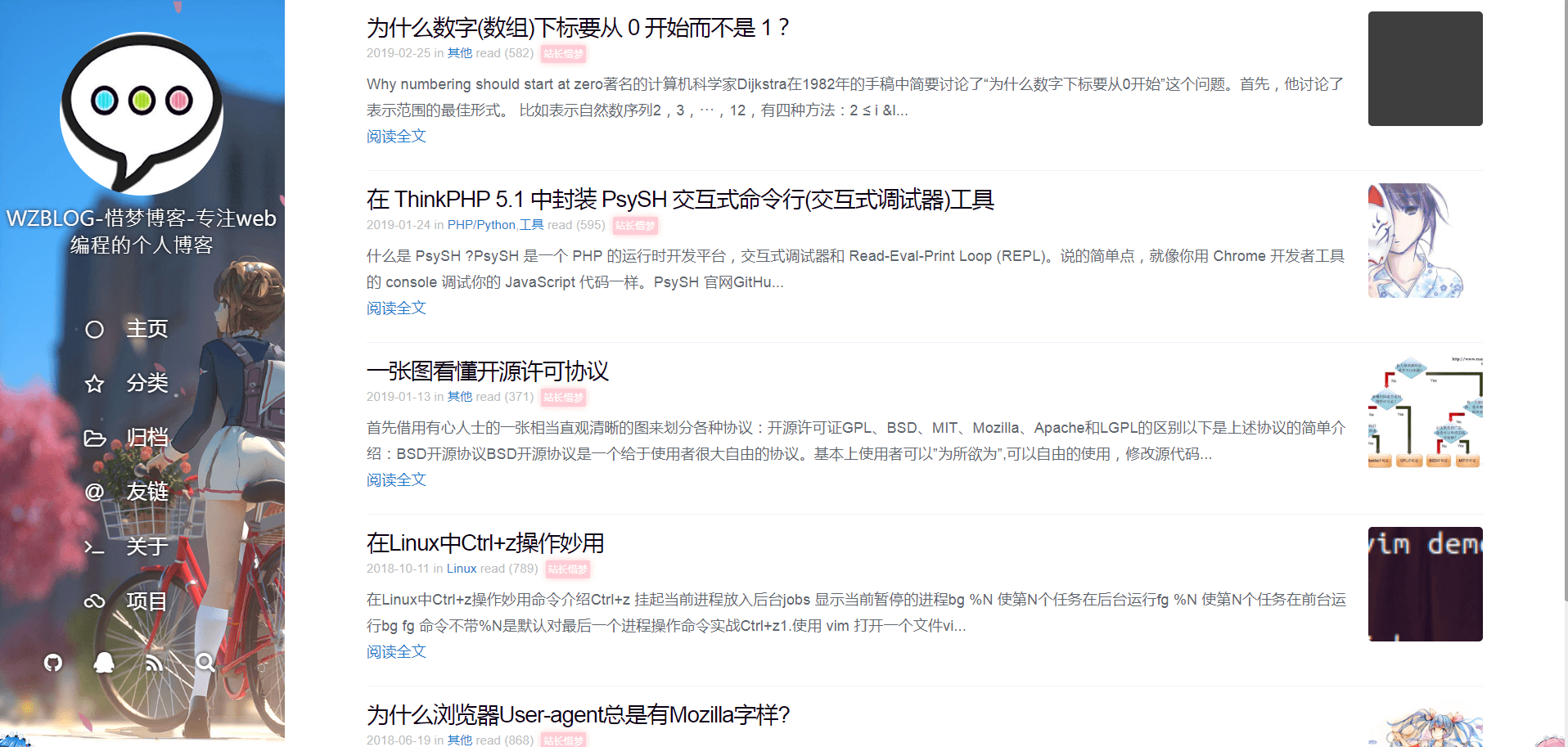 标题:WZBLOG- 惜梦博客 - 专注 web 编程的个人博客