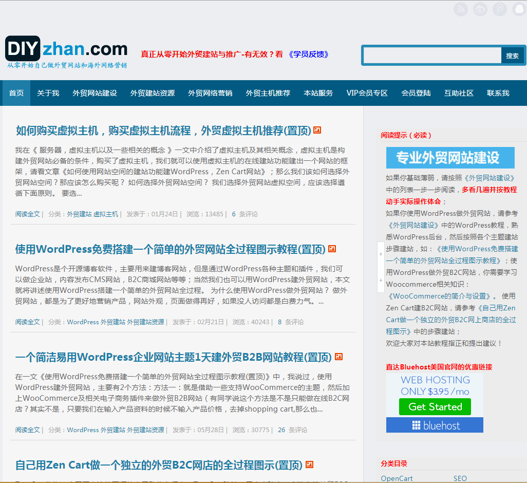 介绍:DIYzhan.com- 从零开始自己做外贸网站和海外网络营销 - 外贸人自助建站与外贸电子商务营销实战经验分享 | 分享外贸人从零开始自己做外贸网站,做海外网络营销的经验。教会新手如何从注册域名,购买虚拟空间,使用开源软件搭建外贸电子商务网站;教会新手如何使用 SEO,Google Adwords, SNS 社交网络营销等。..