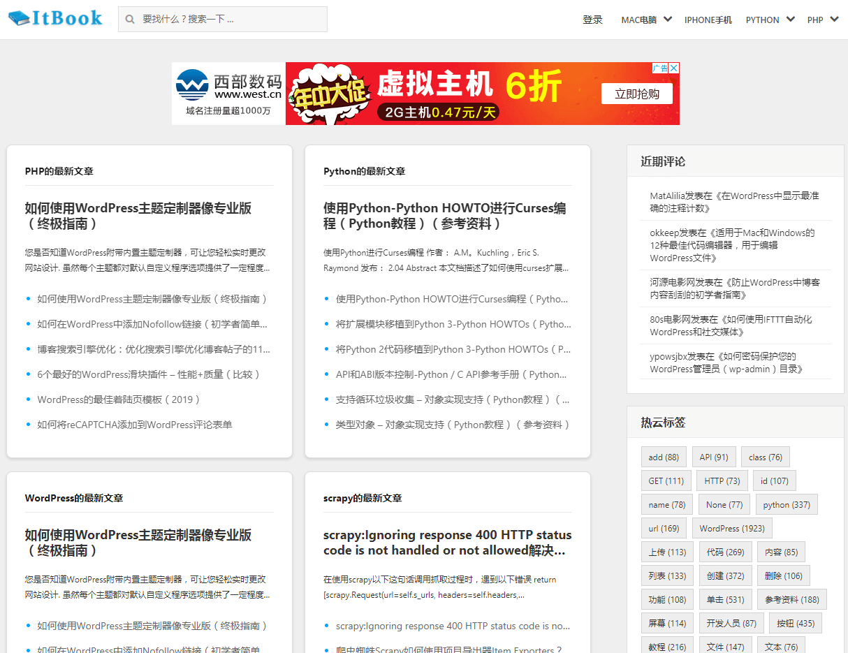 介绍:ItBook 专注于提供翻译于国外优秀的英文信息科技知识文档,包括 python 编程经验、WordPress 软件使用经验及教程、MAC 电脑、IPHONE 手机数码产品使用经验及教程等资料信息