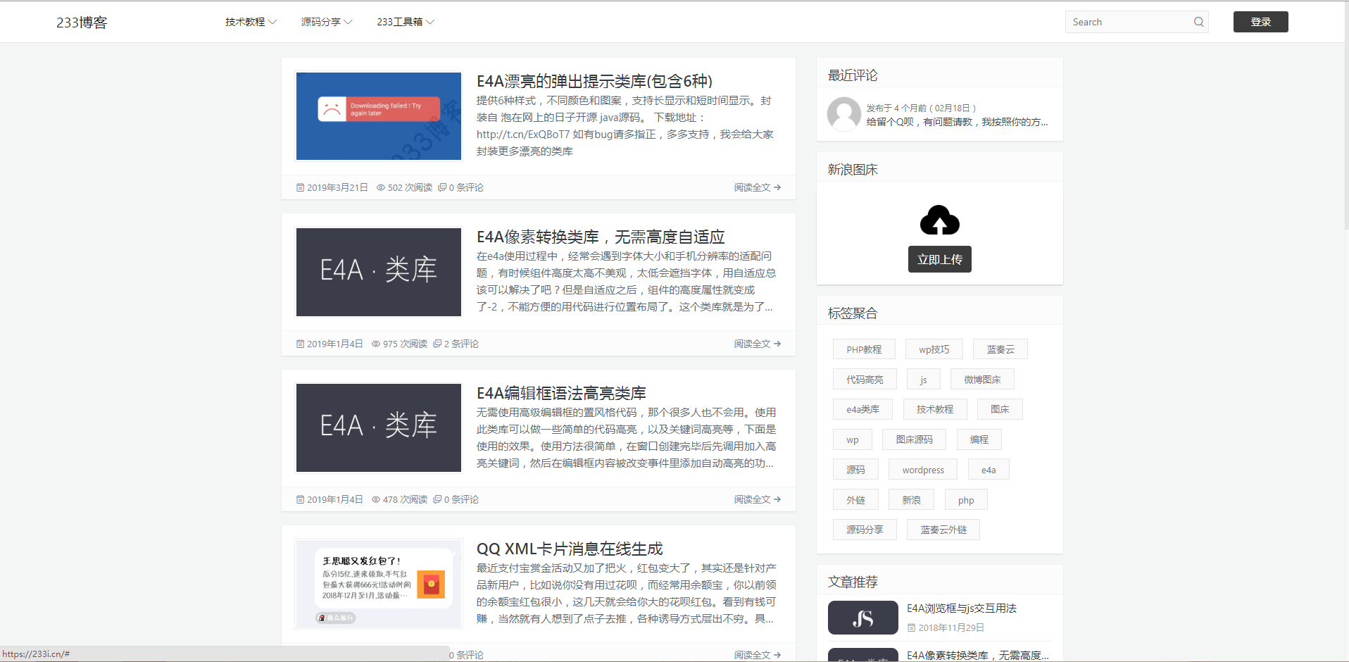 介绍:一个由个人兴趣而诞生的博客,专注分享互联网资源,各种软件和网站源码,以及技术交流与分享。233 博客,有内容,有意思的小小站。