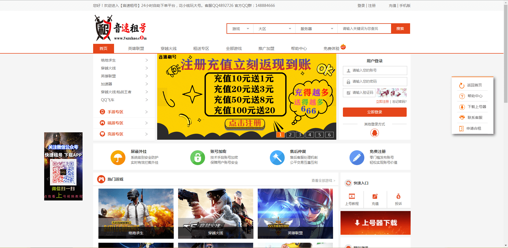 介绍:音速租号网是国内专业的游戏租号交易平台,玩家无需帐号密码即可畅玩 LOL(英雄联盟),CF(穿越火线)等游戏的极品号,同时租号软件还有防外挂等安全防护功能,能从根源上保证游戏帐号安全。- 国内专业游戏租号推广平台,cf,lol 等游戏高级账户无需密码即可畅玩,低门槛推广租号多样盈利,安全放心创业加盟赚钱!
