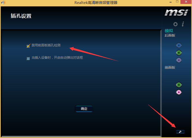 勾选 ” 禁用前面板插孔检测 ”,如已勾选,忽略该步骤。