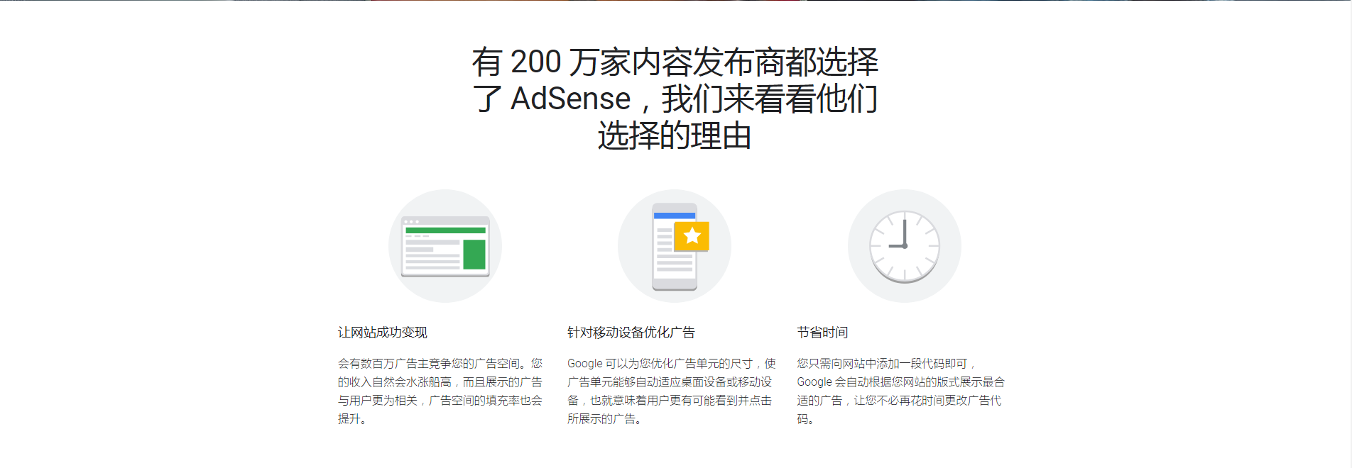 介绍:借助 Google AdSense,让网站创收变现。我们会为您优化广告尺寸,让用户更有可能看到并点击您网站上的广告。