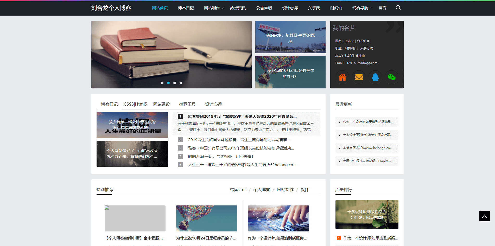 介绍:刘合龙个人博客网站, 一个站在 web 前段设计之路的小白程序员个人博客网站,提供个人博客,资源、资讯个人网站 div+css 源码分享。
