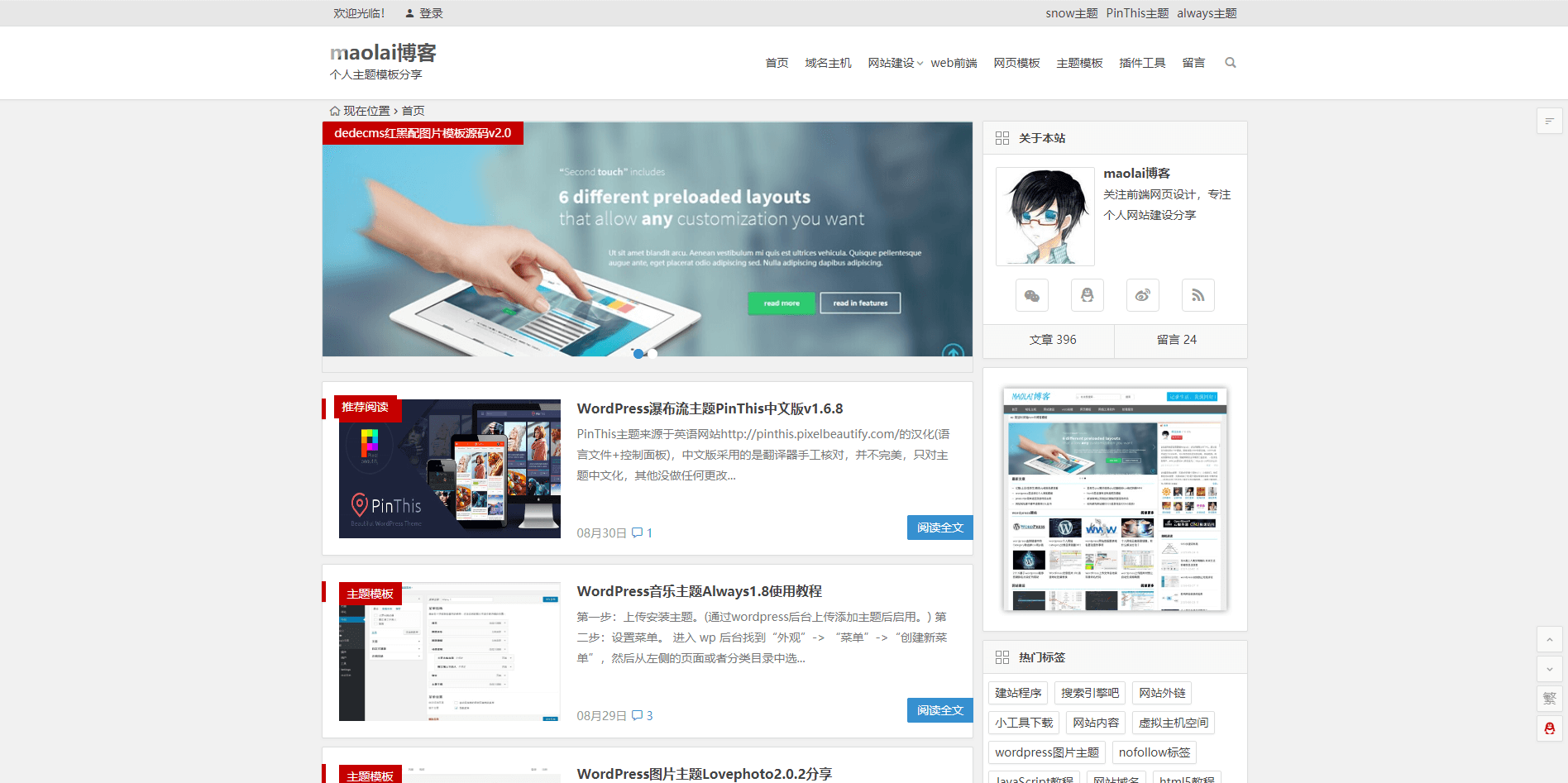 介绍:一个分享个人网站建设,wordpress 建站教程,cms 建站教程, 网站插件,web 前端开发, 个人博客模板, 主题模板的个人原创博客网站。