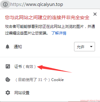 如题,接入七牛云存储后,本来 HTTPS 显示为安全链接,但接入后却提示网站不安全。以本站为例,谷歌浏览器显示网站不安全,但是下面却提示证书有效
