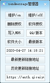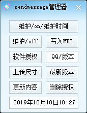 3.” 循环发送消息 ” 管理工具:” 设置维护时间,设置是否维护,写入 MD5,添加授权,删除授权,版本管理,上传尺寸等 ”,参考下图;