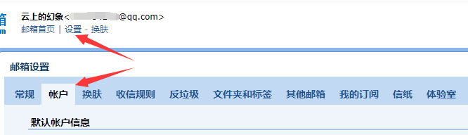首先登陆 QQ 邮箱 进入到邮箱后台,左上方点击设置 > 账户(找不到的小伙伴可以参考下图):
