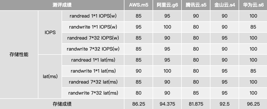 存储成绩 =IOPS 平均分×50%+lat 平均分×50%