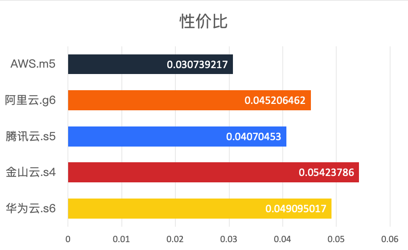 虽然差距不大,但可以看出,金山云 s4 和华为云 s6 是性价比较高的机型。