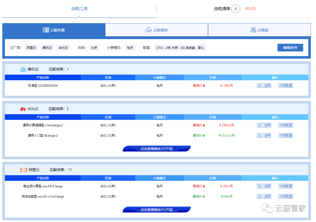 可以百度搜索 云服务之家认准下图:进入点击云比价即可。