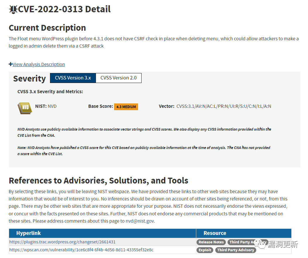 参考:https://nvd.nist.gov/vuln/detail/CVE-2022-0313