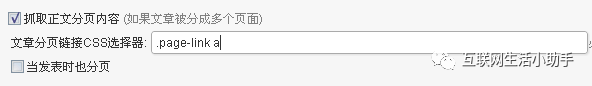 如果文章内容过长,有多个分页同样可以抓取全部内容,这时需要设置 文章分页链接 CSS 选择器,通过查看具体文章网址源代码,找到分页链接的地方,例如某篇文章分页链接代码如下: