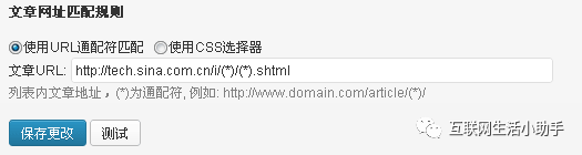 文章网址匹配规则的设置非常简单,无需复杂设置,提供两种匹配模式,可以使用 URL 通配符匹配,也可以使用 CSS 选择器进行匹配,通常使用 URL 通配符匹配较为简单。