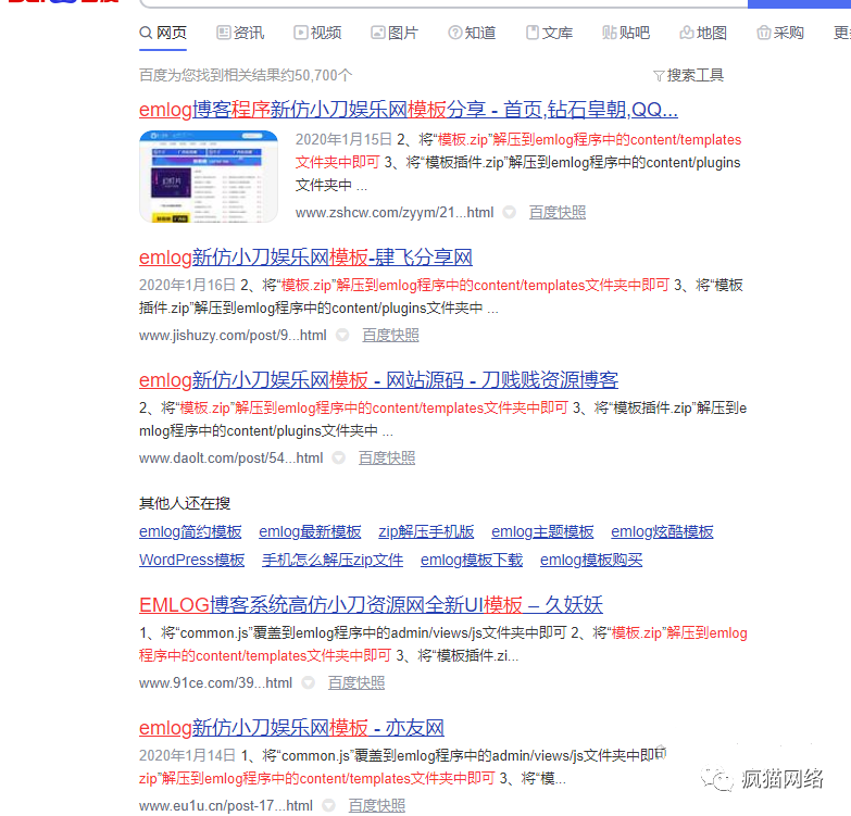 利用模板名字和 emlog 等等关键词查到了该模板的下单链接 (ps: 这么多外链看来这个资源网用的是一个泛滥的模板了)