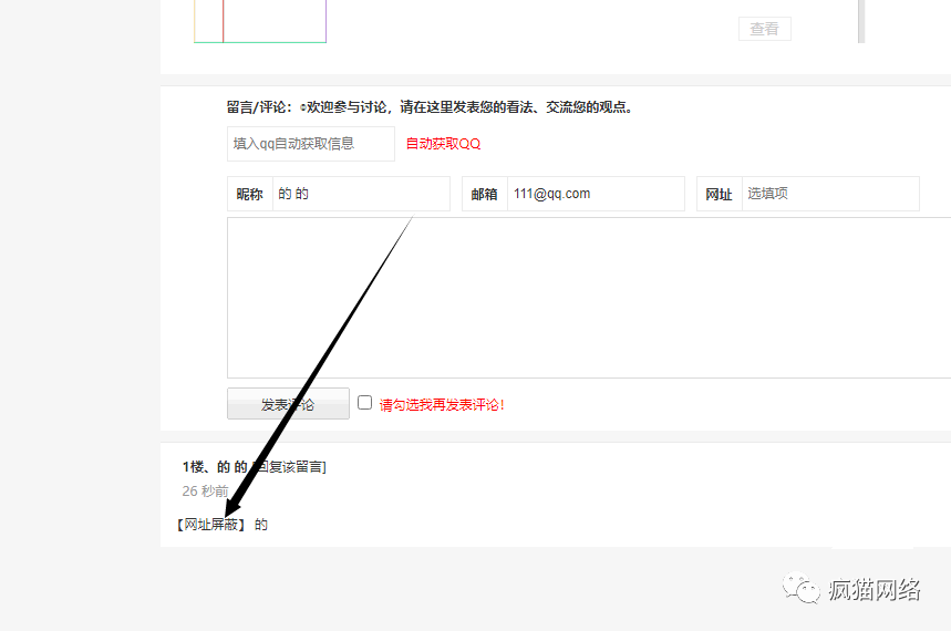 结果存在网址屏蔽 … 也就是如果你的评论包含链接 那么就自动把链接的文本替换为 ”【网址屏蔽】”