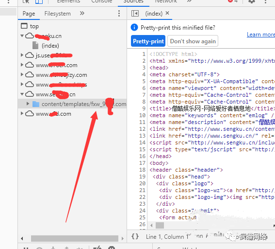 然后我 F12 审核元素,看看它 emlog 模板的文件夹名是什么
