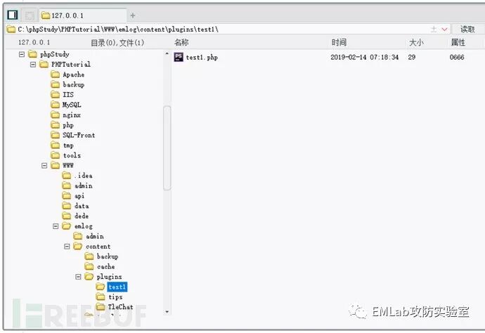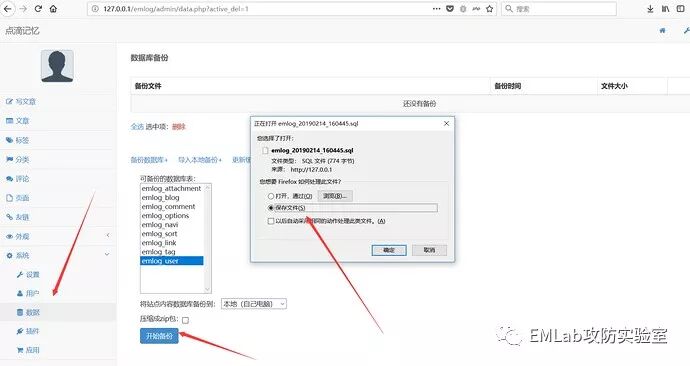 接下来操作如上导入备份文件即可,在 C:/phpStudy/PHPTutorial/WWW/emlog/ 目录下生成 eval.php 的 log 文件。