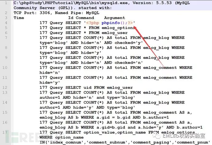 SETglobalgeneral_log_file=C:/phpStudy/PHPTutorial/WWW/emlog/eval.php;