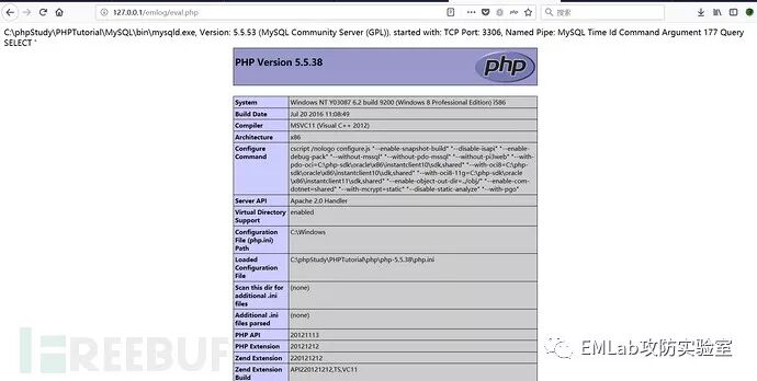访问 http://127.0.0.1/emlog/eval.php,查看获取 shell。