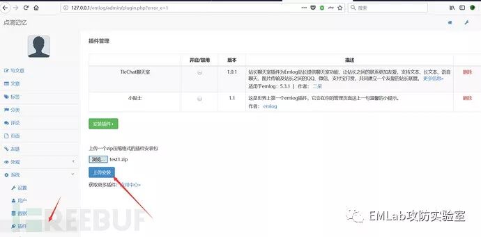 在 admin/plugin.php 插件上传处存在上传漏洞,通过上传 zip 压缩的文件,即可上传木马文件。在 plugin.php 约 79 行处的上传点当 action 为 upload_zip 进行判断,先判断是否上传文件是否为空..