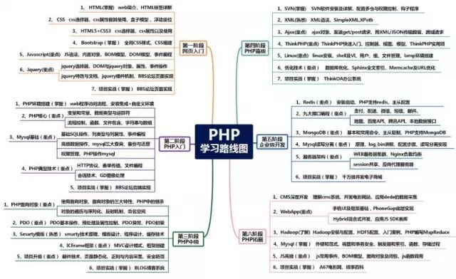 PHP 学习路线图—PHP 开发所有手册