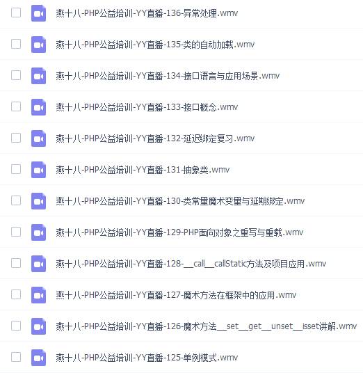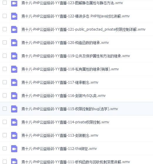 获取视频教程,这里的视频教程随时都会变,主要针对初学者,新手们!PHP 面向对象视频教程 (30 集全),学习 php,肯定要 学习面向对象,视频教程大同小异,小编觉得此视频教程讲师讲解思路清晰,比较全面,足以满足初学者们学习了,现在分享给大家,有需要的可以保存后学习,视频教程是用来学习的,不是用来收藏的哈