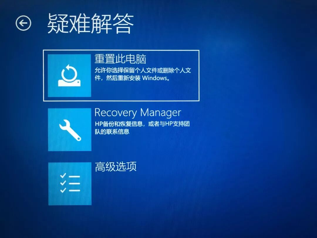进行 重置此电脑 或惠普独有的Recovery Manager