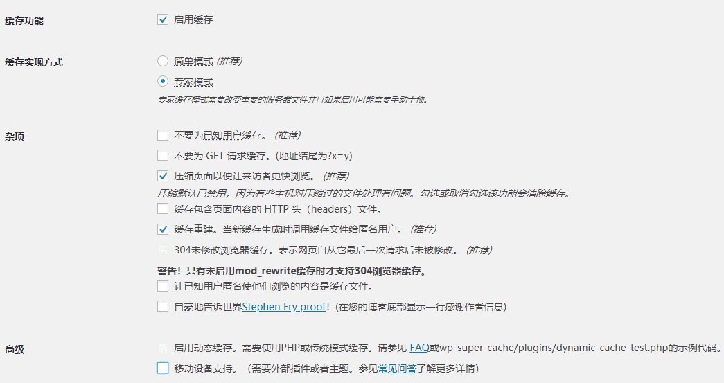 今天给大家分享一下本站使用的缓存插件,wp super cache 该如何设置:
