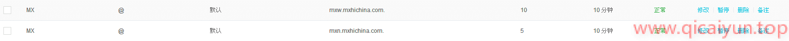 今天在折腾 CDN 时,出现了一个非常糟糕的情况,就是修改解析时,提示 cname 与 mx 记录冲突,以阿里云服务商为例,默认有两个 MX 记录,如下所示