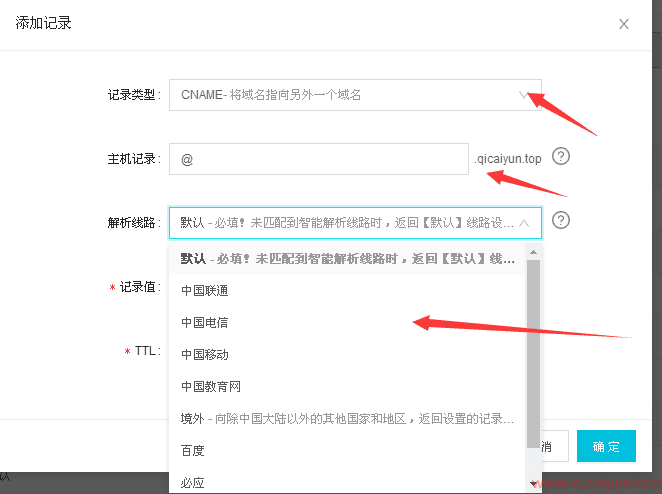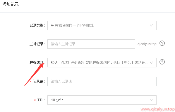 今天来说一个不删任何记录就完美解决此问题的方法,本站域名服务商为阿里云提供的,所以后面所述均为阿里云为例,不过其他域名服务商都大差不差。在我们添加解析时,都会有一个解析路线,大部分都会选择默认路线: