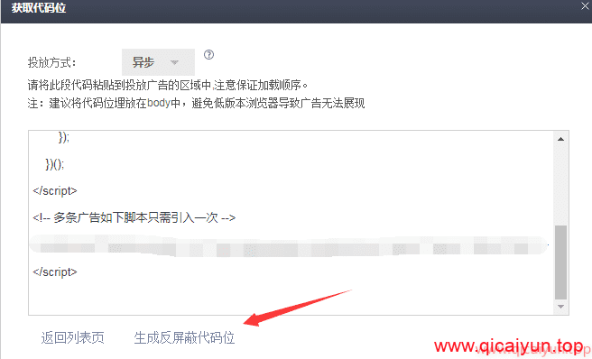进入代码位管理,点击对应广告的获取代码: