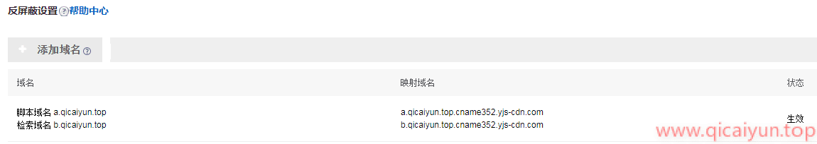上图为添加域名步骤已经生效后的效果。需要你到域名服务商那添加两条 cname 记录,就是上图中的映射域名,添加后等待生效即可,(生效时间最长不会超过一小时)。下面咱们来看看如何生成反屏蔽链接: